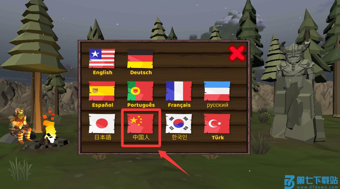 之后选择中国国旗即可完成中文的设置,最后返回主界面点击“玩”即可开始游戏。