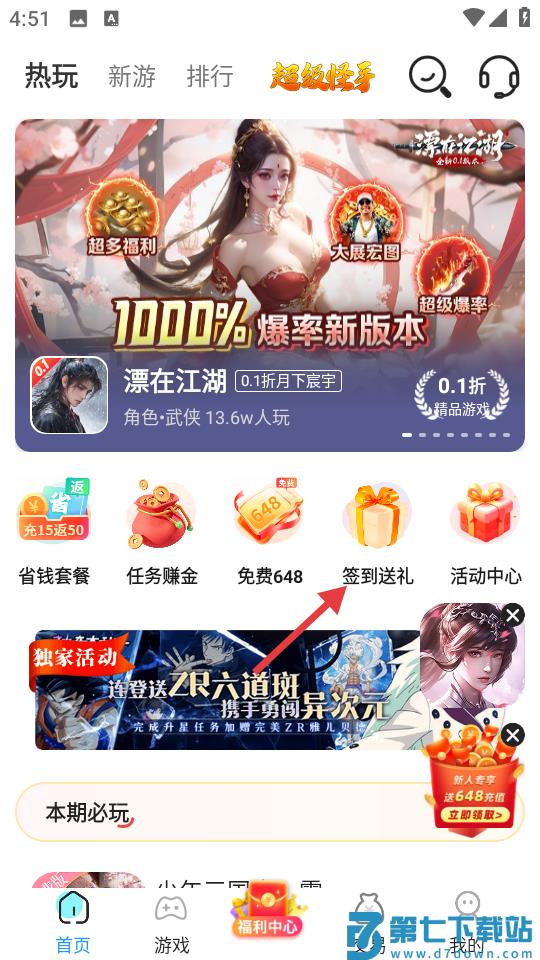 3、新游戏上线,方便玩家发现更多新游戏的福利。