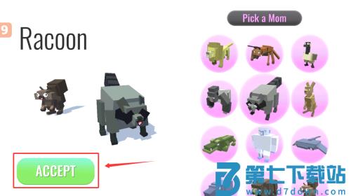2、查看动物角色后,点击红框标注的绿色ACCEPT按钮确认。
