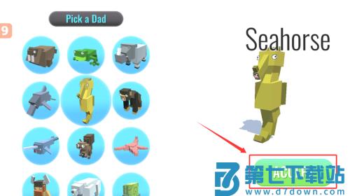 1、点击红框箭头指向的绿色ACCEPT按钮,确认选择海马爸爸角色。