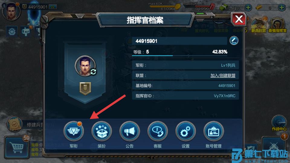 2、在指挥官档案中点击军衔。