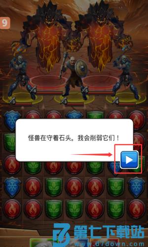1、点击红框箭头指向的蓝色按钮,开始削弱怪兽。