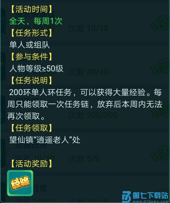 每天的10+40组封妖除魔,经验不容小觑,等级达到30级就可进行除魔活动,达到40级就能进行降妖活动啦