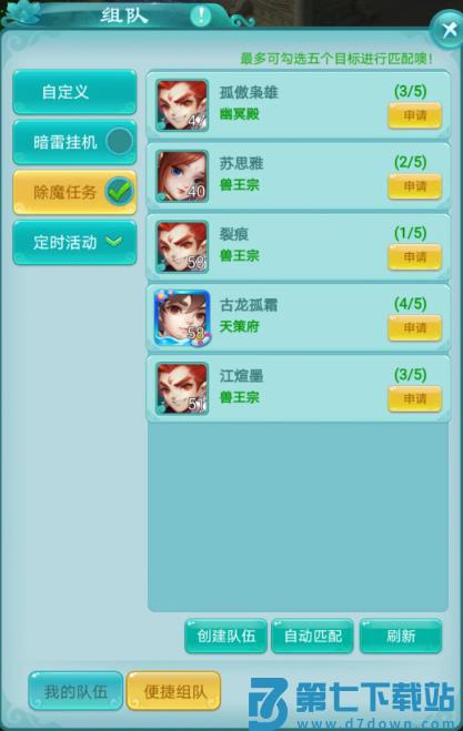 而且组队也超简单的,不管是自己当队长还是想混队伍,世界喊一喊或者点击组队界面快速匹配队伍,人就来了呢,你说封妖除魔次数太多完成太慢?