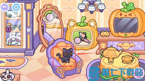 3、点击红框标注的与黑猫进行互动。