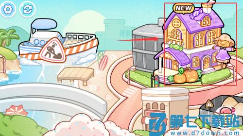 2、根据红框箭头提示,点击紫色房屋进入场景。