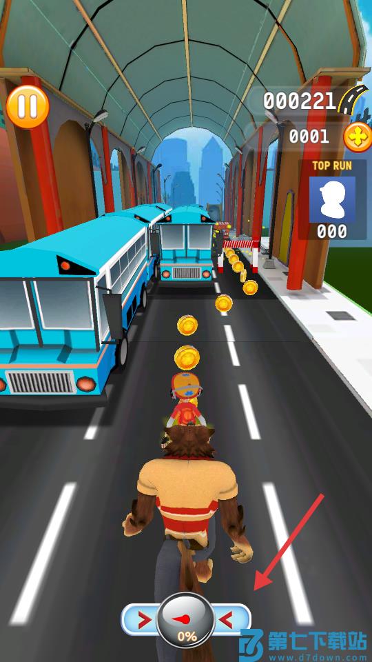 2、躲避沿途的公交车和各种障碍物并收集硬币。