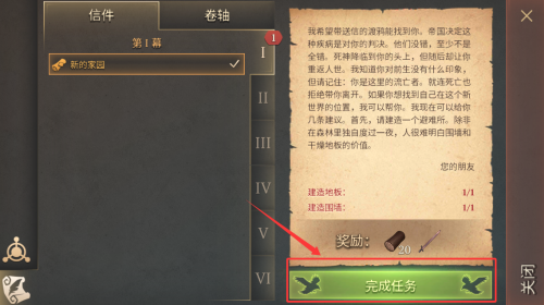 3、点击完成任务按钮,领取木材和镐子。