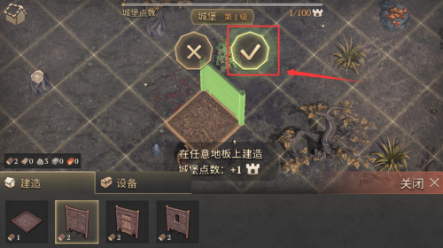 1、在建造标签下选择并点击盾牌物品放置。