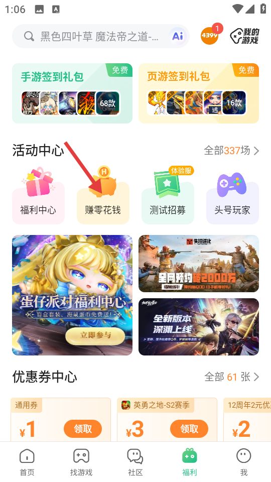 2、点击中间的赚零花钱。