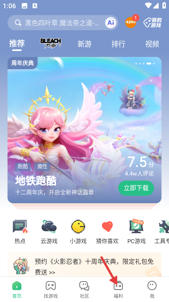 1、主界面点击进入福利页面。